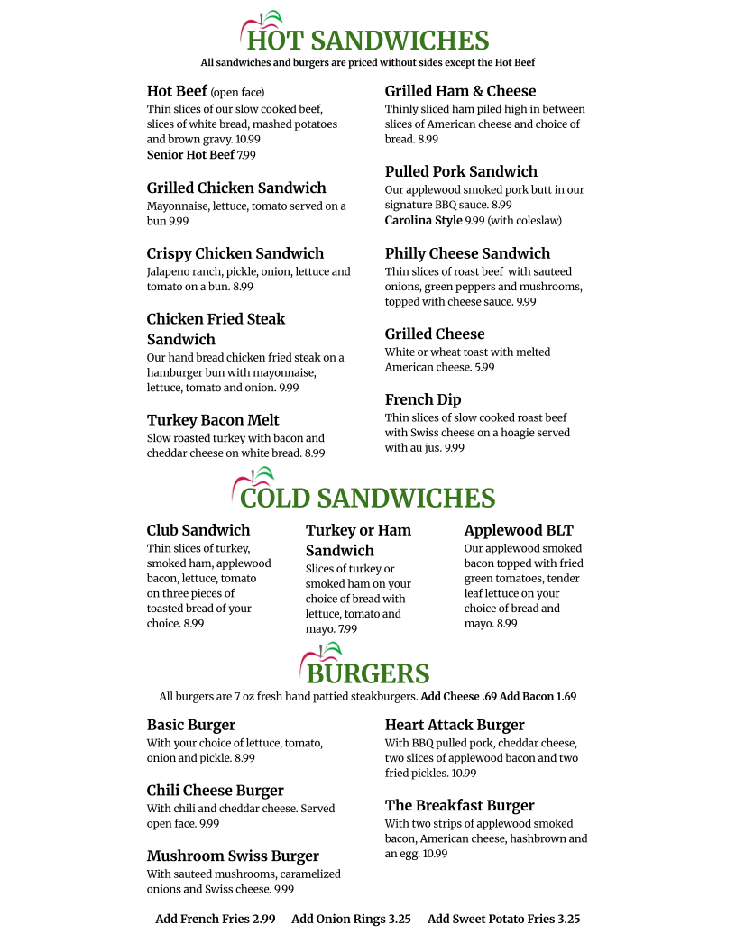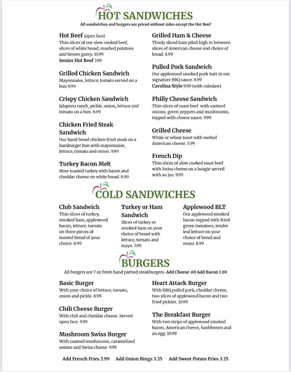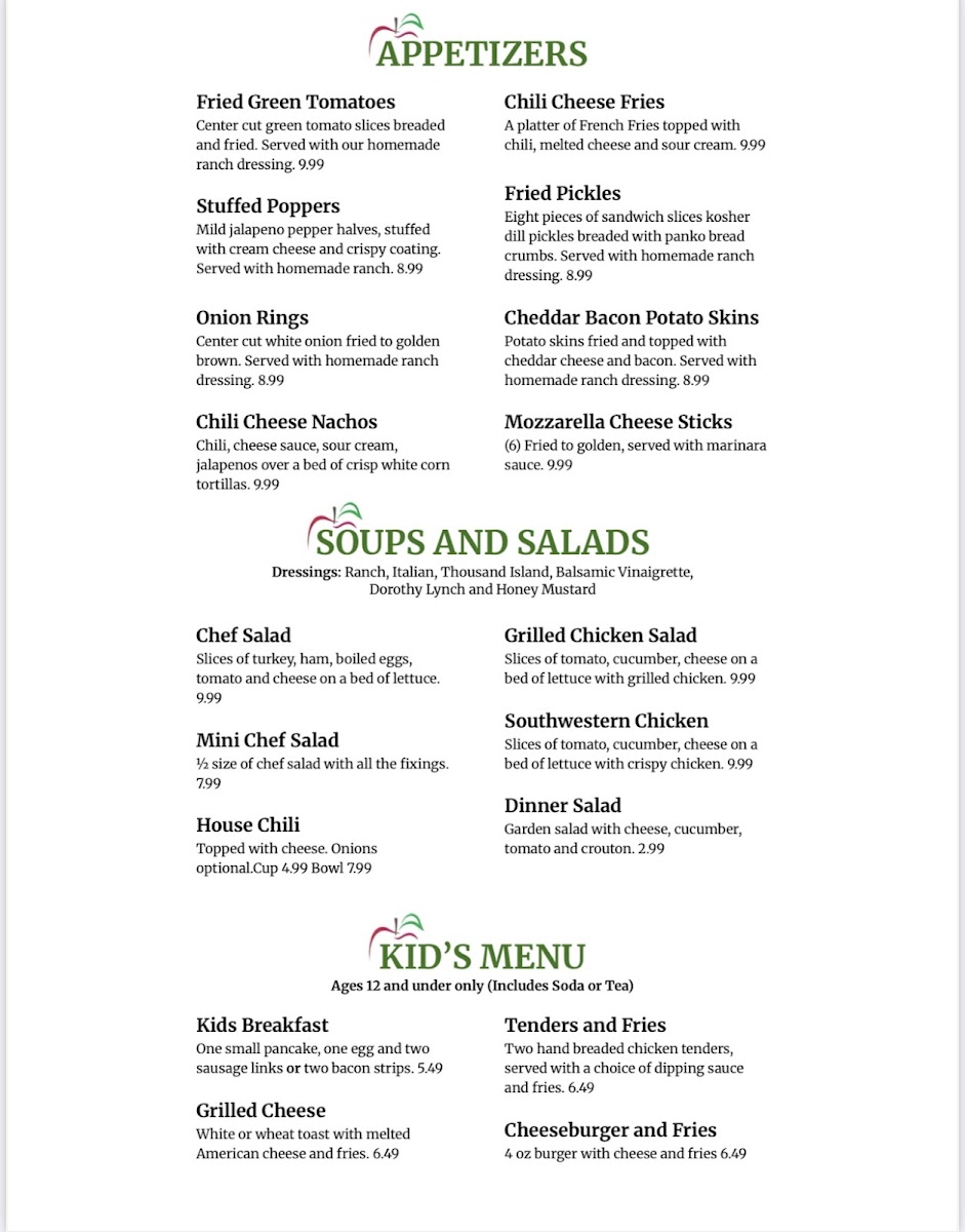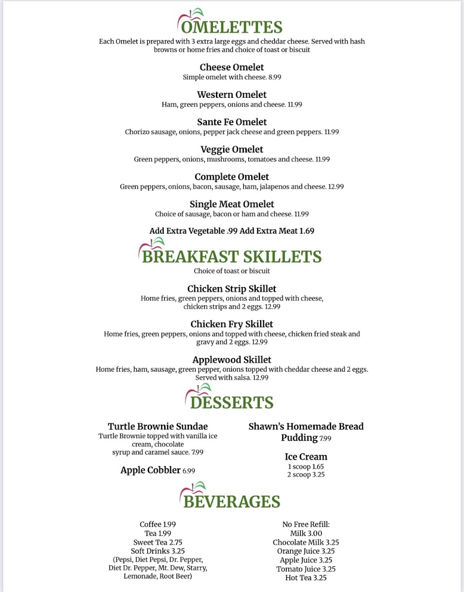 Step into the warm and inviting atmosphere of Applewood Restaurant Menu, where comfort food meets delicious home-style cooking. Located at 1515 S Main St, South Hutchinson, KS, this spot is a perfect choice for anyone craving hearty meals made with fresh, local ingredients. Whether you're in the mood for tender steaks, savory burgers, or something lighter, there's something for everyone. The menu is designed to please all palates, from mouthwatering appetizers to satisfying main courses. Each dish is carefully crafted, ensuring every bite is bursting with flavor. Don't forget to save room for one of their signature desserts, which are the perfect way to end your meal on a sweet note. Whether you're dining in with friends or grabbing a quick bite, the Applewood Restaurant offers a cozy dining experience that's sure to leave you coming back for more.